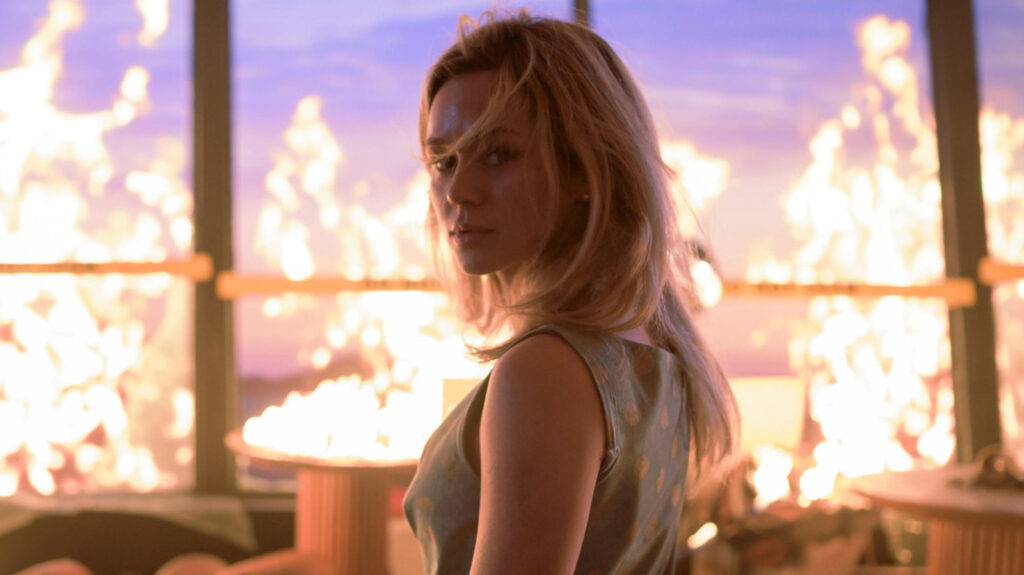 In 1969, a young, pregnant Iris Campbell (Brec Bassinger) is enjoying a night on the town with her boyfriend, Paul (Max Lloyd-Jones), at the Skyview. Both are nervous; Paul because he’s planning on proposing, Iris because she hasn’t told him about her upcoming blessed event and is afraid he’ll dump her. The brand-new restaurant is somewhat like the Space Needle in height and design, but what Iris suddenly sees in her mind’s eye isn’t a nice dish of steak tartare. She pictures a shard of crystal chandelier falling onto the floor, cracking its glass surface. One event leads to another, which leads to a gas leak being lit aflame, blowing up the restaurant and killing everyone inside in gnarly ways.